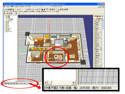 床面積は「天井と床の設定」で確認することができます。 「天井と床の設定」は、階層メニューから対象の部屋アイテムをダブルクリックすることで表示されます。