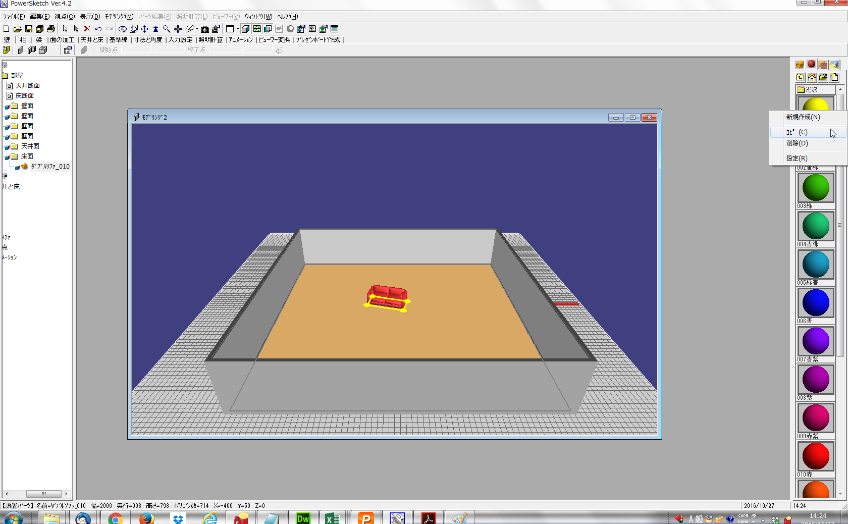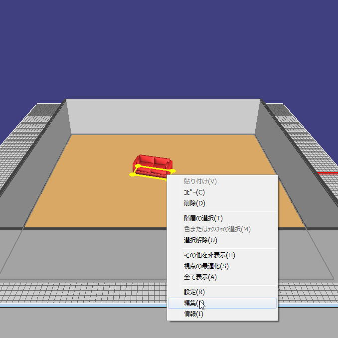 【方法1】 @部屋に配置されているパーツから、パーツ編集ウィンドウを開きます。