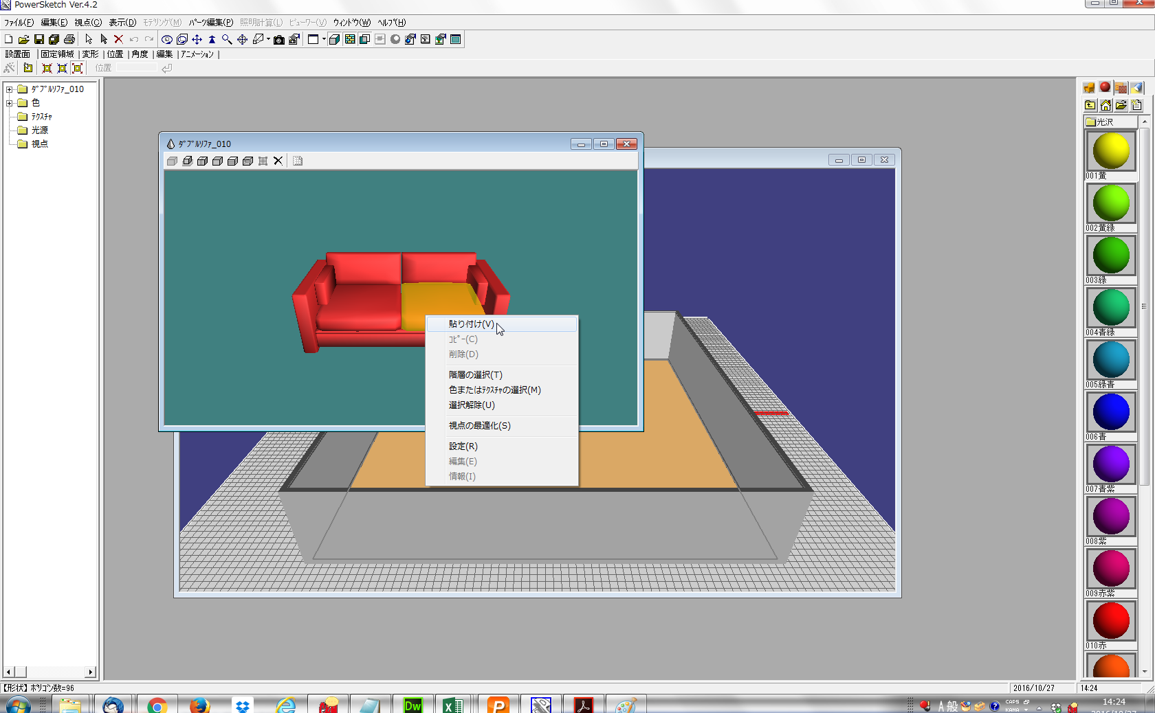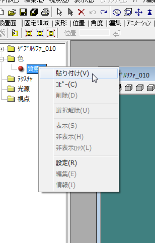 A設定したい形状を右クリックしてポップアップメニューから[貼り付け]をクリックするとテクスチャが貼り付けられます。