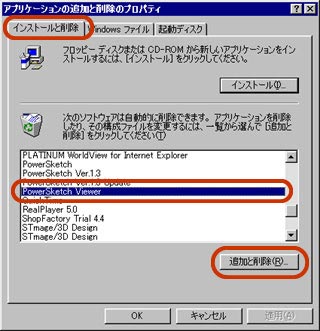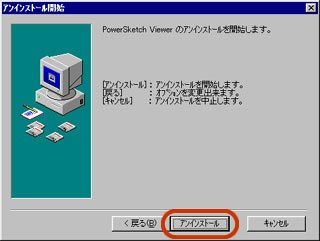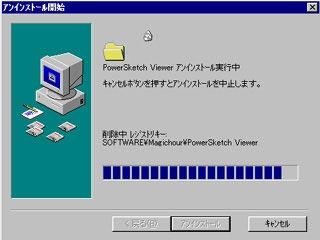 注意: PowerSketch Viewerを使用中にアンインスト−ルを行うと、正常にアンインスト−ルされません。必ず、使用を終了してから上記操作を行ってください。